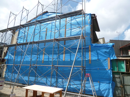 足場養生をしっかりする事で近隣の方へのホコリや騒音を最小限に抑えることができます。