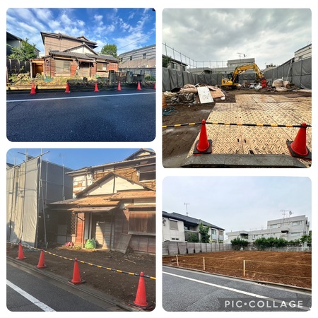 道路は前面6m以上ありますが、ご近隣様に迷惑を、掛けたくないというご意向の為、ご近隣様対策、低騒音型重機、そして安全を第一に出来る限り人力(て壊し)撤去を行いました。安全を確保でき重機を搬入し、計30日にて完工。弊社はご近隣様対策と丁寧に解体していく事をモットーにしております。
