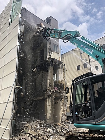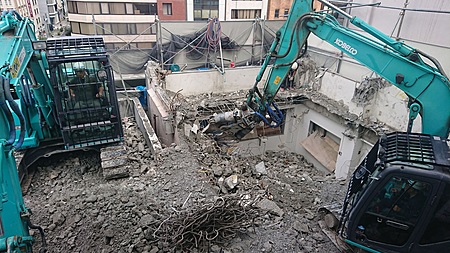 高層ビル及び隣接している為壁倒し施工にはゆっくり、正確な施工をした。