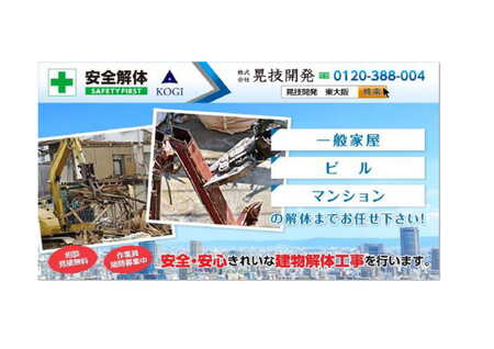「安心・安全・きれいな解体工事」をモットーに、建物解体工事を行います。