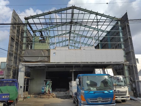 市街地にある鉄骨造2階建倉庫の解体工事を担当させていただきました。近隣には小学校・中学校などがあり、全面道路がスクールゾーンに設定されており、第三者災害に非常に気を遣う工事でしたが、近隣学校への周知、交通誘導員の配置や工事看板の表示などを徹底した結果、無災害で工事を終えることができました。工事期間中もノークレームのほか、近隣の皆様にお茶菓子をいただくことがあるなど、非常に良好な関係を築くことができました。